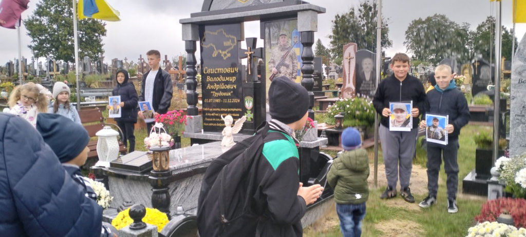 Шкільна родина взяла участь у покладанні квітів на могили загиблих героїв. Хвилиною мовчання присутні вшанували пам’ять тих, хто віддав своє життя за Україну: Корнагу Івана, Гедза Михайла, Свистовича Володимира та Пруса Юрія.